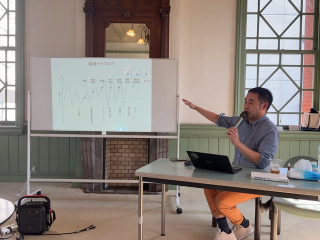 グループ対話の後は、望月さんによる話題提供。望月さんは、「『越境』とは、ホーム(日常)とアウェイ(非日常)を行き来して、価値観が揺さぶられる経験のこと」だと語ります。「越境」は、実は身近なところにチャンスがあり、いかにさまざまな物事に関心を持ち、異なる価値観を受け入れ、周囲を巻き込んでいけるかが大切だということでした。
