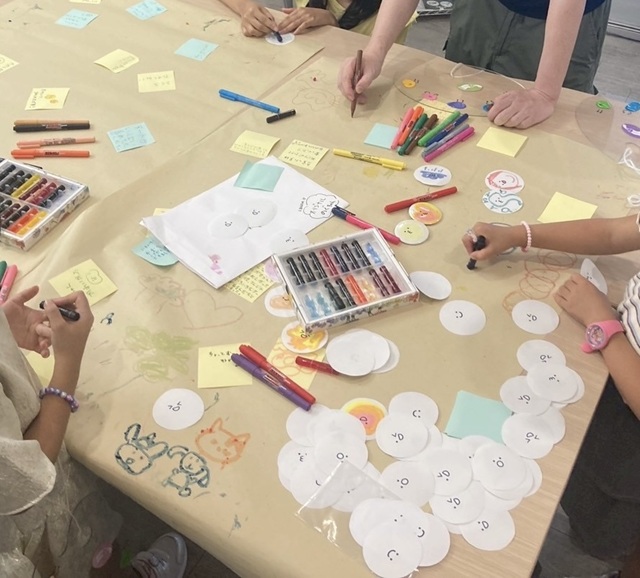 認定シールを貼り、感想などを模造紙に自由に書いてもらいました。アートスポットで見たものを絵に描いてくれている子もいて、楽しい思い出ができたようで嬉しかったです。
