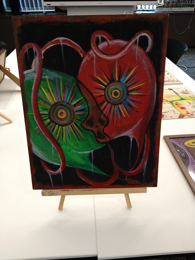 2枚目は蛇のようなものが描かれている絵でした。私は成長と反抗をイメージしました。周囲の妨げがあっても上にいきたいという意思を感じたからです。