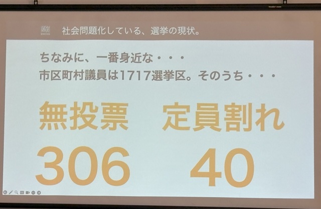 問題として、選挙への関心が少なくなっていることと、「議員の成り手不足」も社会問題になっているということ。