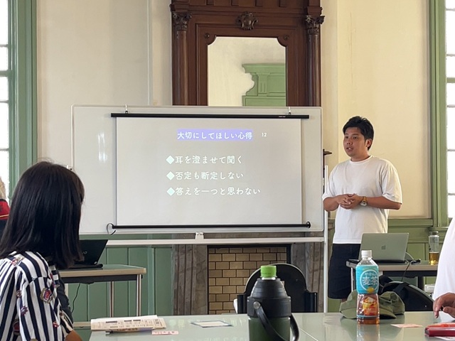 話し合いをする前にも準備体操は必要なんです」と説明。